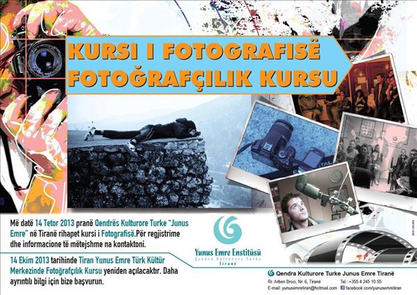 Tiran Yunus Emre Türk Kültür Merkezi’nde Kültür-Sanat Kursları çerçevesinde Geleneksel El Sanatları (Ebru ve Kaligrafi) ve Fotoğrafçılık Kursları başlayacaktır.