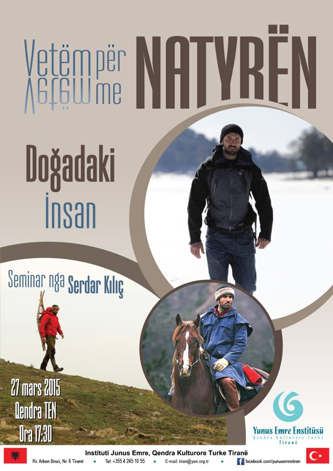‘Doğadaki İnsan’ adlı belgeseli ile tanınan sporcu, çevreci ve televizyon programcısı Serdar Kılıç, 27 Mart 2015, Cuma günü, saat 17:30’da toplum üyelerimizle buluşacaktır. Konferans sonrası ayrıca, Sarıkamış konulu, Türkçe dilinde ve Arnavutça altyazılı bir belgesel gösterimi gerçekleştirilecektir.